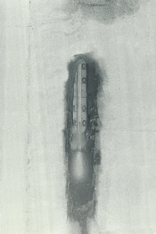 Um die Temperatur am Außenthermomenter ablesen zu können mussten wir ein Loch durchs Eis hauchen: