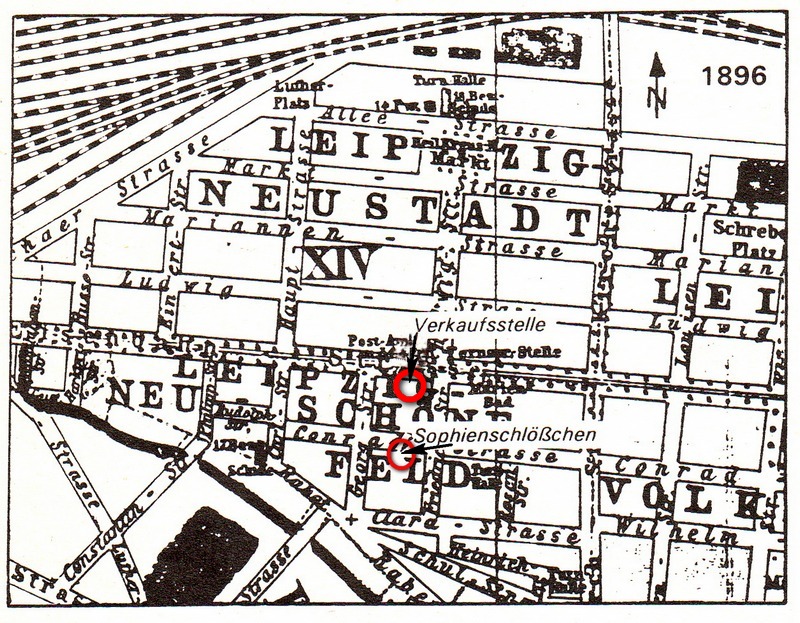 Die genannte Gaststätte ,,Sophienschlößchen“ befand sich in der damaligen Sophienstraße 33 in Neuschönefeld. Eigentümer war der Brauereibesitzer E. Bauer (Brauerei im Täubchenweg – auch heute noch/wieder). Die Straße wurde später umbenannt, das Haus trug die Bezeichnung Konradstraße 20, es wurde in den siebziger Jahren abgerissen. Grund und Boden liegen im heutigen Rabet-Park, etwa gegenüber vom Kindergarten.