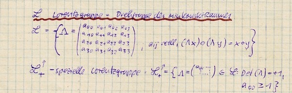 Oder an einem anderen Tag, nach Ausführungen zu sehr wichtigen physikalischen Transformationsgruppen wie der Lorentzgruppe: