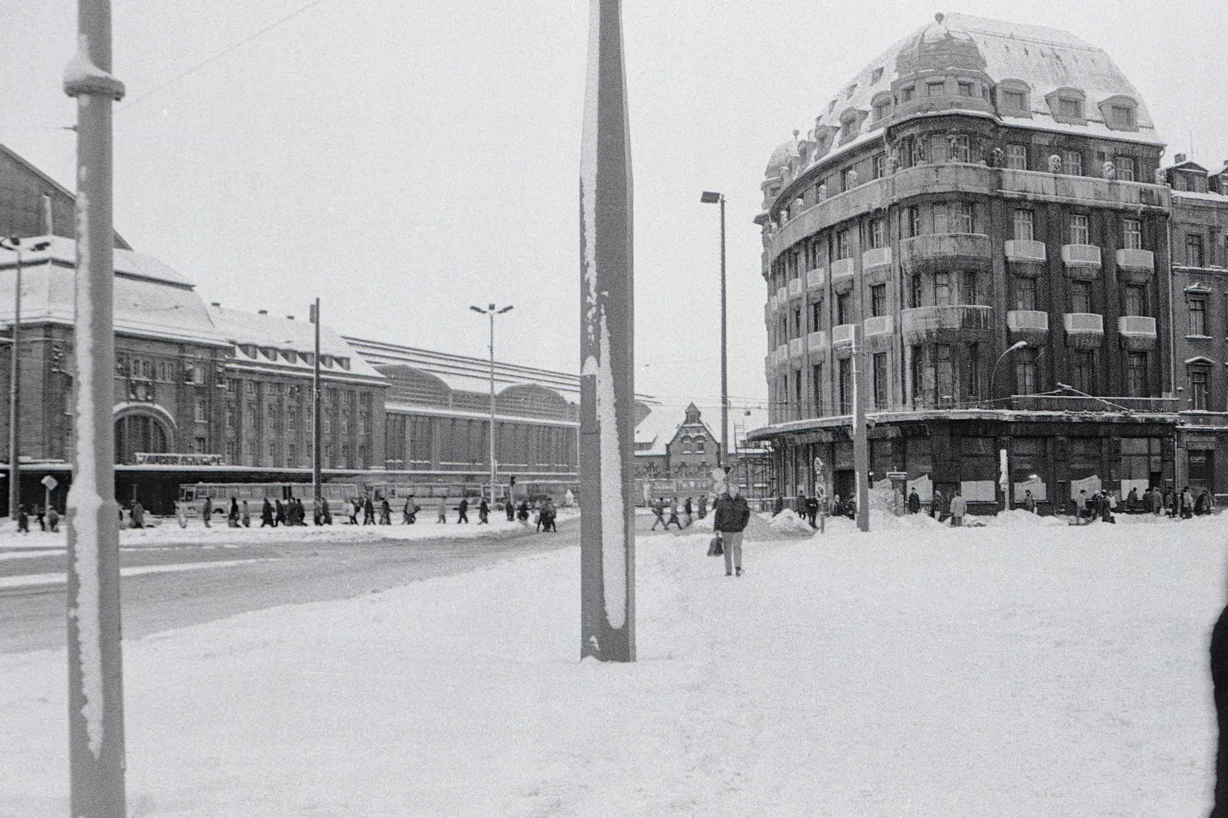 Nein, per pedes war an diesem Tag oft die einzig mögliche Fortbewegungsart, weil die Temperaturen ganztägig unter minus 20 Grad abgesunken waren. Der Leipziger Straßenbahnverkehr kam durch die häufiger werdenden Stromabschaltungen und Störungen der elektrisch betriebenen Weichen fast zum Erliegen. Manchmal blieben Straßenbahnen auch mitten auf der Straße einfach stehen und nach dem die Fahrgäste ausgestiegen waren sah das sehr gespenstisch aus …