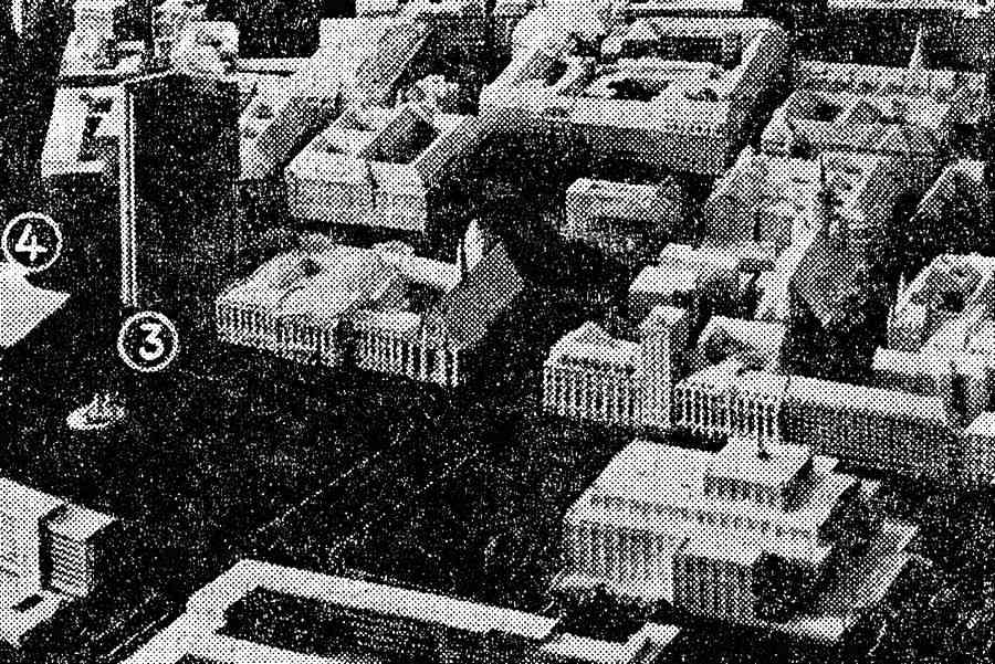 1. Ein Hochhaus-Projekt am Karl-Marx-Platz aus dem Jubiläums-Jahr 1965 in der Zeitung.