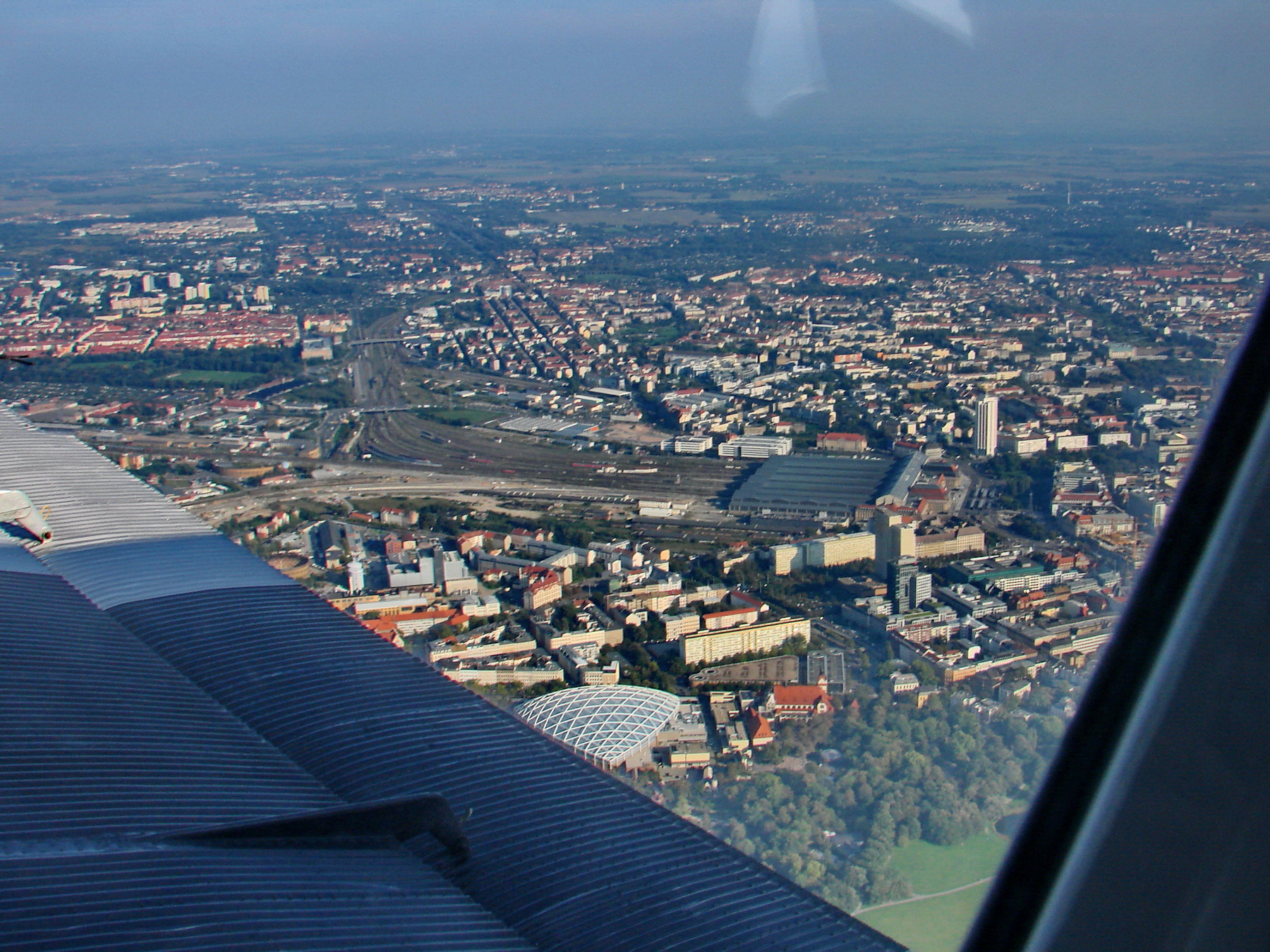 Am 21. September 2011 haben wir bei einem Streckenflug von Dresden nach Leipzig gegen 16:30 Uhr die Leipziger Innenstadt bei Ideal-Flugwetter mit der Ju52 in Richtung Schkeuditz überflogen.