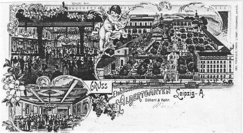 Die Wohnung lag günstig. An der nächsten Ecke befand sich seit 1887 die Pferdebahn-Endstelle der Linie vom Augustusplatz nach Anger-Crottendorf am Restaurant ,,Albertgarten“. Mit der Pferdebahn konnte man damals in 17 Minuten bis zur Leipziger Innenstadt fahren. Die Postkartenkopie (links) zeigt das Restaurant ,,Albertgarten“, vorn die Haltestelle der (Pferde-) Straßenbahn – im Jahr 1991 fuhr hier noch die Linie ,,2″, heute fahren hier die Buslinien ,,72″ und ,,73″. Rechts am Kartenrand ist ein Teil der damaligen Rudolfstraße zu erkennen, ganz hinten vielleicht die Wohnhäuser Nr. 1 und 3 …