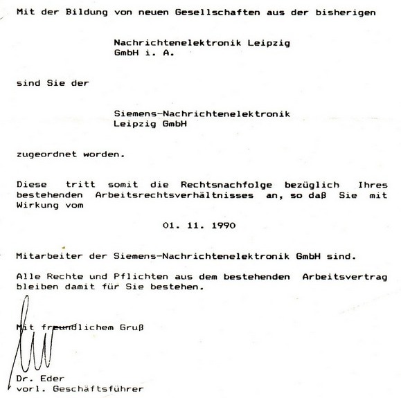 - von der Nachrichtenelektronik Leipzig GmbH zur Siemens-Nachrichtenelektronik Leipzig GmbH