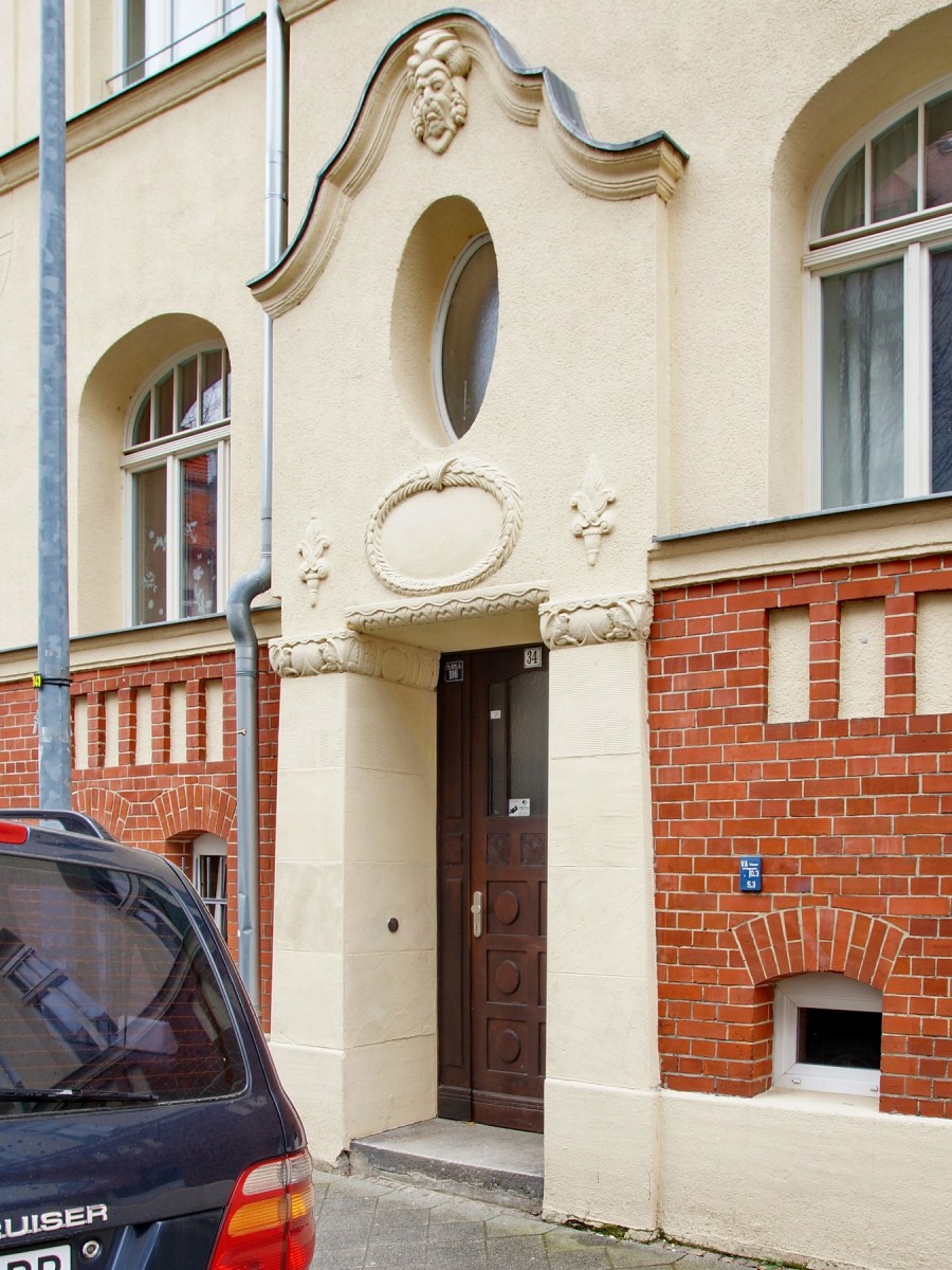 Vo.A.106_Com34_Tuer Veröffentlicht 22. März 2016 in 1350 × 1800 in Blaue Schilder im Leipziger Osten (3.) ← Zurück Weiter → Haustürfront, Comeniusstr. 34