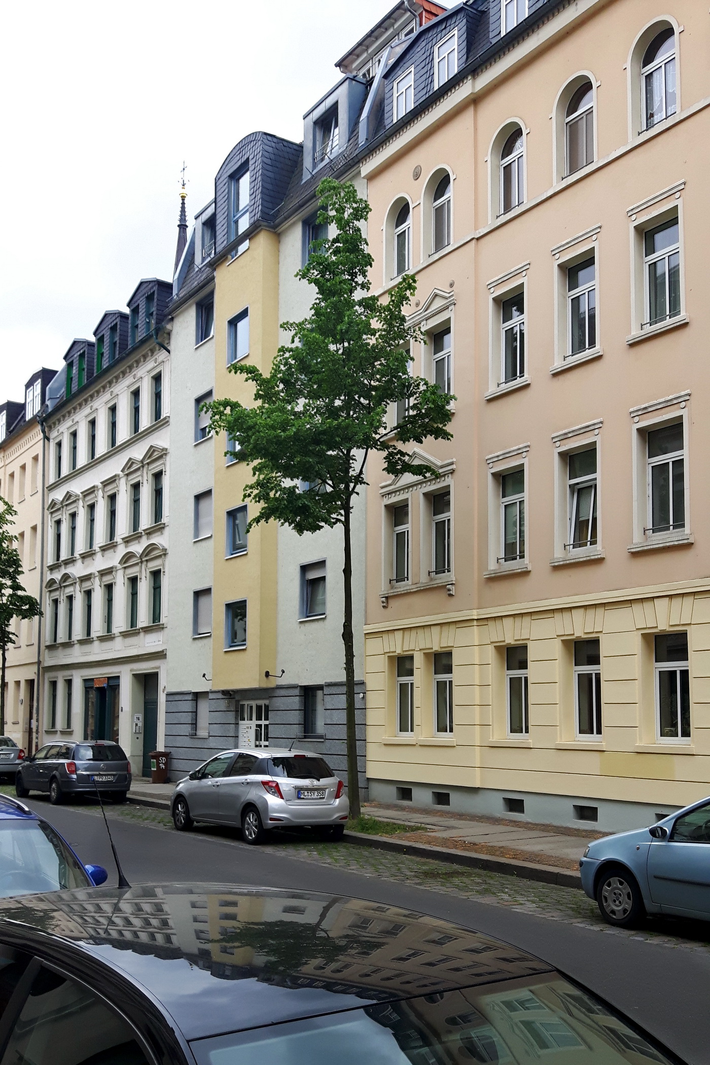 Wie ich aktuell ermitteln konnte, ist das älteste dieser drei Häuser unser ehemaliges Wohnhaus in der Schulze-Delitzsch-Str. 16 [damals Allestraße Nr. 29]. Es wurde als Miethaus mit Putzfassade und Tordurchfahrt im Jahr 1878 in geschlossener Bebauung errichtet und steht sogar unter Denkmalsschutz. In der sächsischen Liste der Kulturdenkmale wird es unter der Objekt-ID 09293284 geführt.