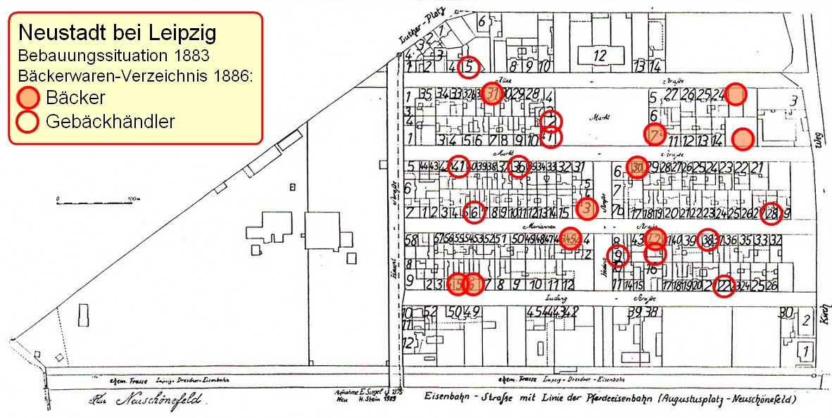 Im Reudnitzer Tageblatt, Nr. 142, vom Mittwoch, den 15. September 1886, ist ein aktuelles Bäcker-Verzeichnis der damaligen Gemeinde Neustadt bei Leipzig abgedruckt.