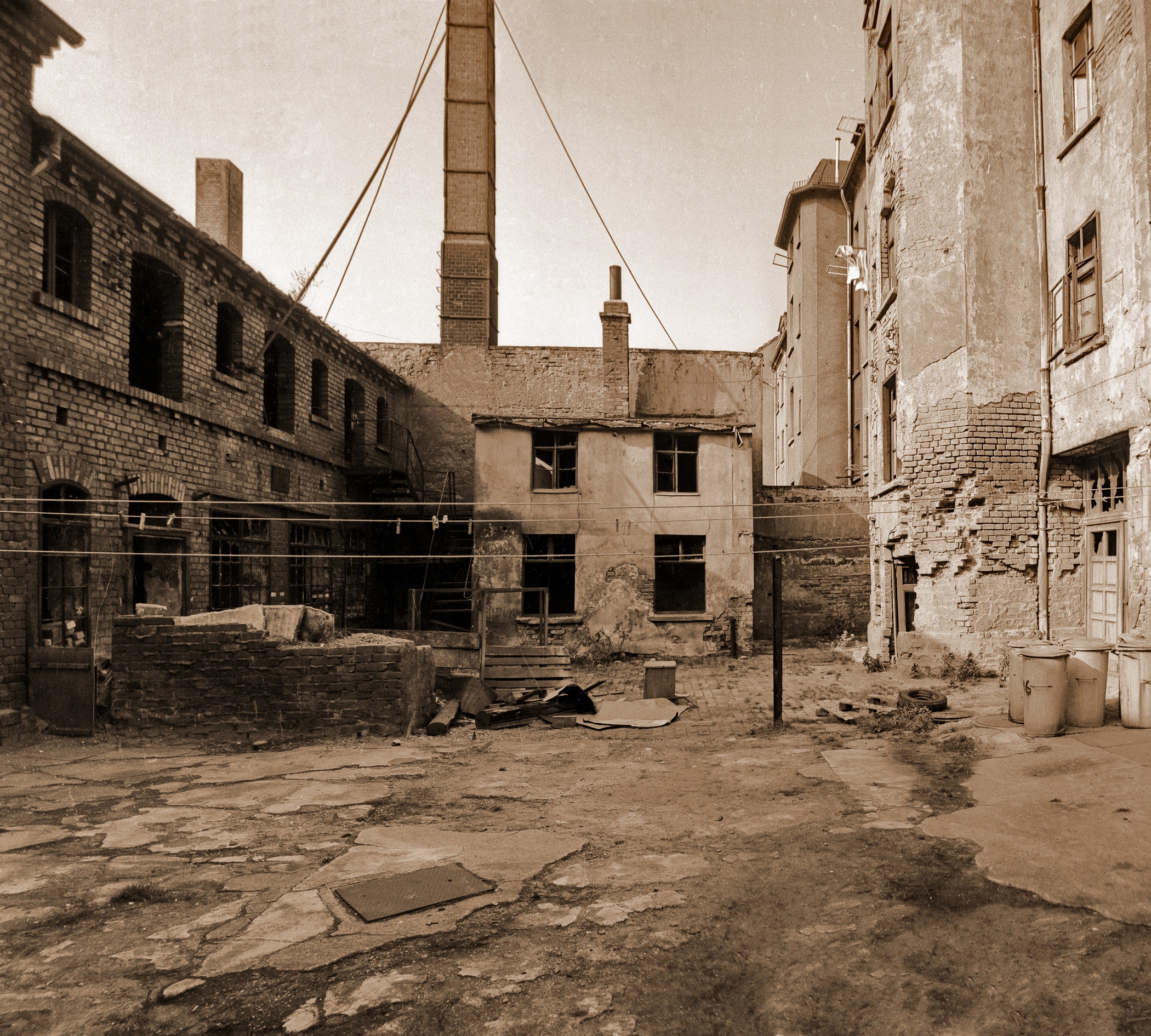 Das Haus Nr. 16 hatte auch einen Hof. Aber alle Hinterhöfe in Geviert waren, wie auf dem linken Bild unten zu sehen, mit vielen ein- bis zweistöckigen Hinterhof-Häusern zugebaut. Meistens handelte es sich schon in den 1970er Jahren um nicht mehr nutzbare Ruinen ehemaliger (und alter) Gewerbegebäude.