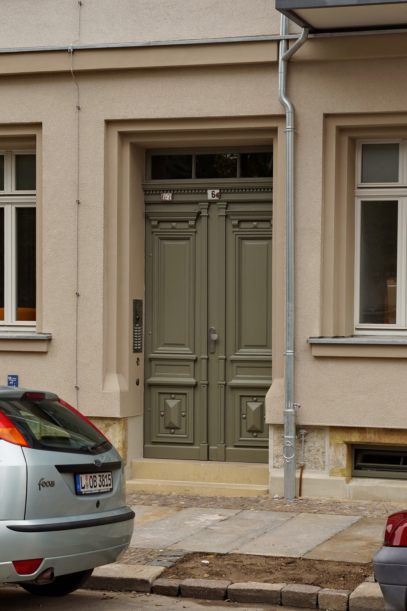 Melanchtonstraße 6, das einzigste weiße Emaille-Schild mit schwarzer Schrift in Reudnitz. Zum Glück wurde dieses Schild nach der Sanierung als Denkmalimmobilie im Jahr 2016 vom Bauherren wieder angebracht.
