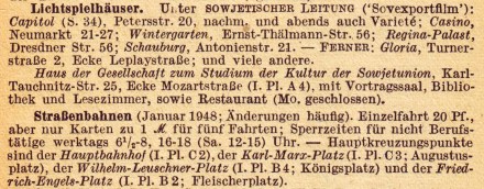 Im Jahr 1948 erschien schließlich der mir vorliegende erste kleine neue Reiseführer ihrer Heimatstadt Leipzig unter der Lizenz Nr. 345 der Sowjetischen Militär-Administration in Zusammenarbeit mit dem Bibliographischen Institut Leipzig.