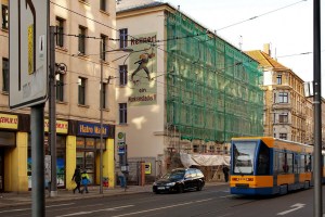 Vermutlich hätten zwei Personen zwischen 6 und 7 Uhr die wasserunlösliche schwarze Flüssigkeit an die Fassade geworfen, so die Polizei. „Offenbar hat die ‚Gentrifizierungsdebatte’ auch den Leipziger Osten erreicht“, meint Behördensprecher Uwe Voigt. Doch die Tat ging nach hinten los: In dem jahrelang leerstehenden Haus an der Ecke zur Ludwigstraße, das eine Investorin vor dem Verfall rettete, sollen keine teuren Luxusappartements entstehen. Stattdessen sind günstige Wohnungen geplant.