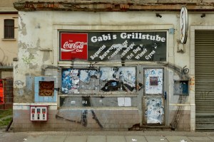 Auch der ,,Imbiss-Schute“ war nur noch ein kurzes Intermezzo beschert. Bald stand das ganze Haus leer und wurde zur Ruine. Im Jahr 2005 wurde das Gebäude Hermann-Liebmann-Straße 85 in die Liste von städtebaulich und denkmalpflegerisch unverzichtbaren Gebäuden (Wohngebäude und wohnhausartige Geschäftshäuser) mit überwiegend akutem Sicherungsbedarf aufgenommen [# Quelle 6]. Da hatte es gute Chancen auf eine spätere Sanierung. Endlich ab dem Jahr 2013 tat sich was. An der Fassade zur Hermann-Liebmann-Straße war ein frisch verputzter vertikaler Streifen zu sehen, untere Bilder, links. Im Beitrag ,,Schnell noch hin!“ bei Geheimtipp Leipzig erfolgte die Aufklärung im ,,Nachtrag am 07.11.2014: