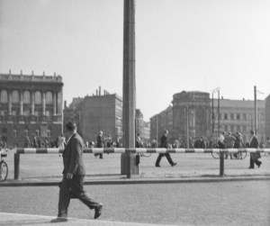 - Zum Ersten: eine große Menschenansammlung auf dem Platz zwischen dem ehemaligen Reichsgericht und dem Landgerichtsgebäude (rechtes Gebäude). Das liegt sicher daran, dass sich im Areal des Landgerichts auch das Untersuchungsgefängnis befand, in das viele der im Laufe des 17. Junis verhafteten Demonstranten eingeliefert worden waren.