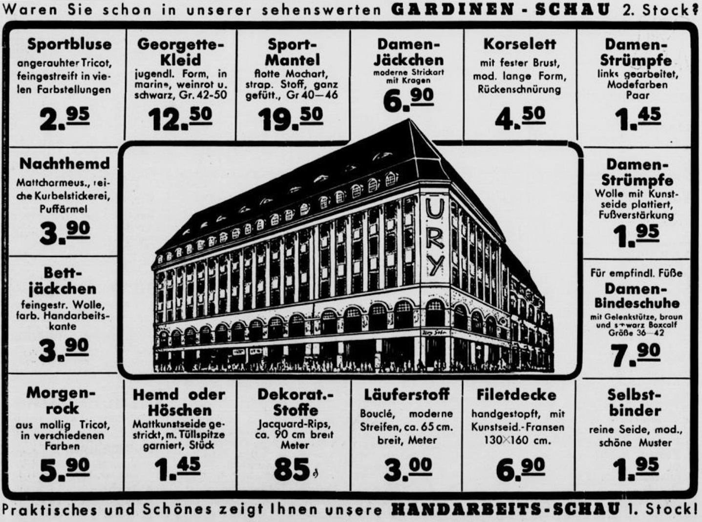 Moritz und Julius Ury eröffneten 1896 das erste Leipziger Warenhaus „Ury Gebrüder: Warenhaus“ am Königsplatz 15 (Wilhelm-Leuschner-Platz). Die Familie Ury, Mutter und Witwe Ernestine Ury und ihre Kinder zogen 1896 nach dem Tode des Vaters Salomon Ury nach Leipzig.