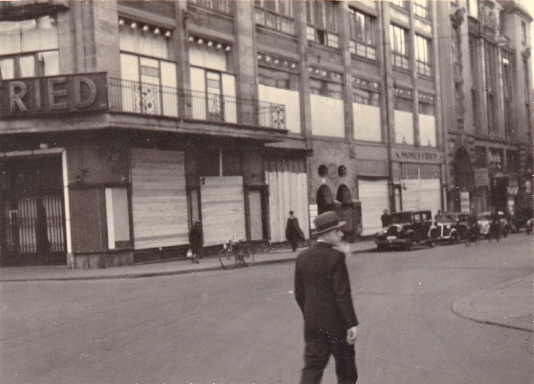 Auch am 10. November 1938 war er mit der Kamera in der Leipziger Innenstadt unterwegs und hat die Zerstörung der jüdischen Synagoge und jüdischer Kaufhäuser im Bild festgehalten.