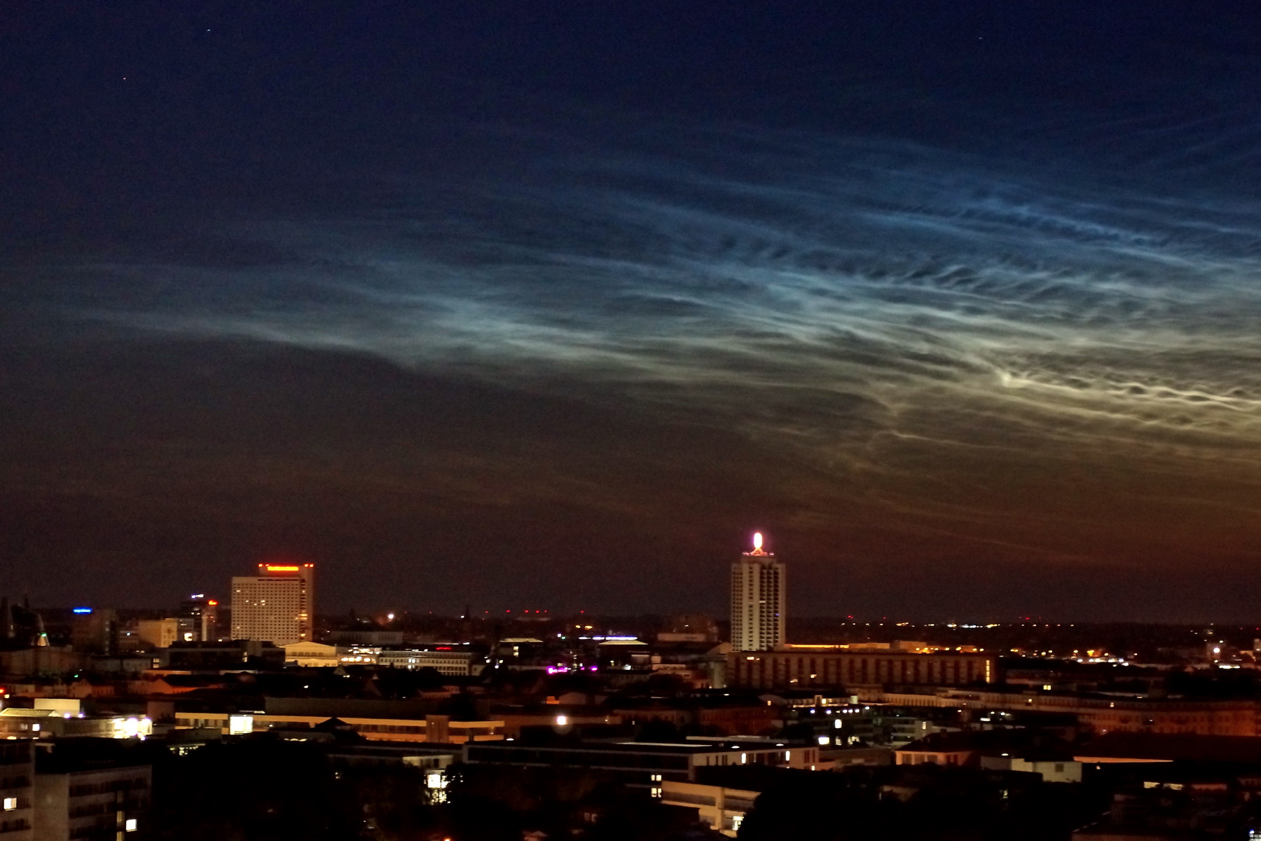 Am frühen Morgen hab ich nicht schlecht gestaunt – da sind die leuchtenden Nachtwolken spektakulär und signifikant über dem Norden von Leipzig zu sehen.