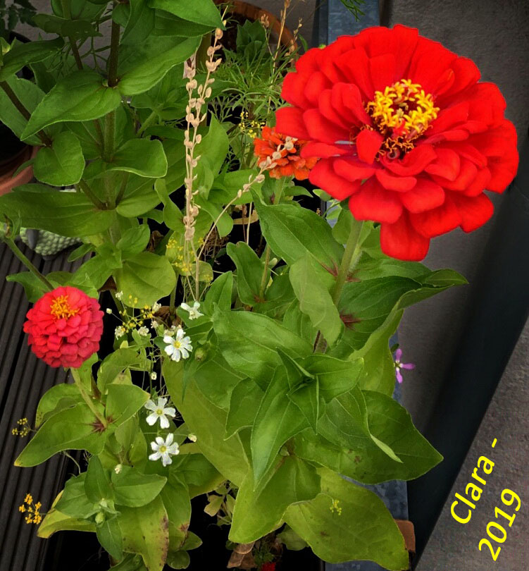 Wir haben ein paar dieser Samentütchen an Verwandte und Bekannte verschenkt und Clara’s Sommerblumen blühen und gedeihen jetzt unter anderem auch in München (siehe Bild oben), Berlin und Frohburg.