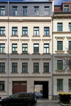 Dort wird erwähnt, dass dieses Gebäude in den 1870er Jahren als Mietshaus in geschlossener Bebauung errichtet wurde, eine Putzfassade mit Sandsteingliederung aufweist und baugeschichtlich von Bedeutung ist. [Quelle #4]