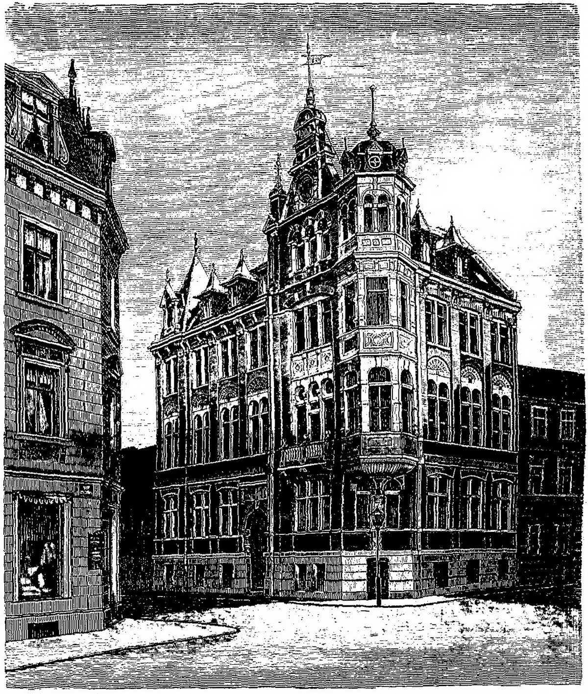 Nach dieser trefflichen Rede trat die Festversammlung einen Rundgang durch die Räume des Rathhauses an, und man war allgemein von der praktischen Anlage aller Räumlichkeiten überrascht und das um so mehr, als doch der zur Verfügung stehende Bauplatz ein ziemlich beschränkter war. Nach der Besichtigung vereinigten sich die Festtheilnehmer zu einem gemütlichen Beisammensein in den ,,deutschen Reichshallen“ und Abends 6 Uhr fand daselbst eine Festtafel statt.“ [Quelle #5]