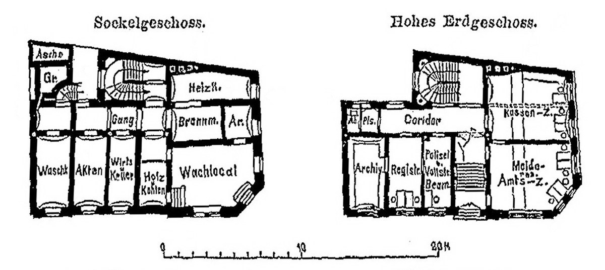 – im Hohen Erdgeschoss befanden sich Amts- und Kassenzimmer, ein Raum für den Vollstreckungsbeamten sowie Registratur- und Archivräume