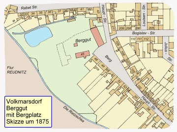 ,,… Benannt nach dem Berggut, dem Hauptteil der ehemaligen Gutssiedlung Volkmarsdorf.