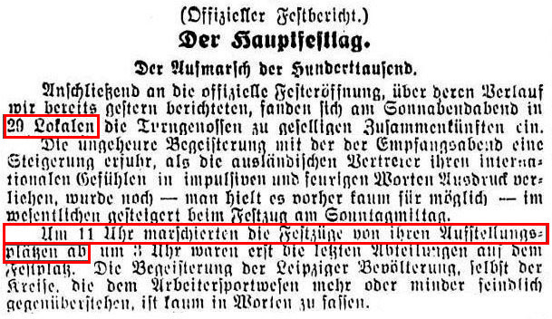 Die Leipziger Volkszeitung berichtet über den großen Festzug am Sonntag, den 24. Juli 1922 wie folgt [Quelle #5]:
