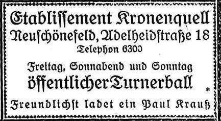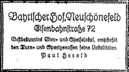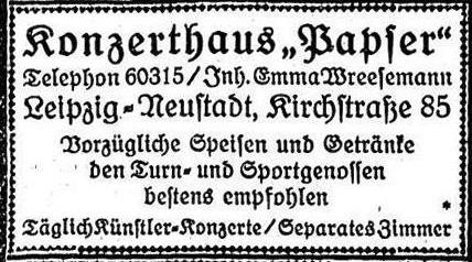 Darüber hinaus wurden in der Leipziger Volkszeitung im Leipziger Osten während der Sportfestzeit folgende Lokale besonders für ,,Turn- und Sportgenossen“, ,,Freund des Sports“ bzw. zum ,,öffentlichen Turnerball“ besonders empfohlen [Quelle #5]: