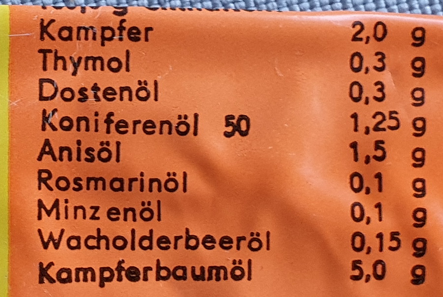 Rezeptur auf meiner alten Pulmotin-Tube (links) und Verbrauchsdatum 16.06.81 (rechts)