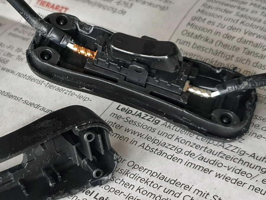 Der Schaltvorgang wird offenbar nur über einen Zuleitungsdraht geöffnet oder geschlossen; der zweite Draht wird (nicht überraschend) am eigentlichen Kippschalter vorbeigeführt, Bild links.