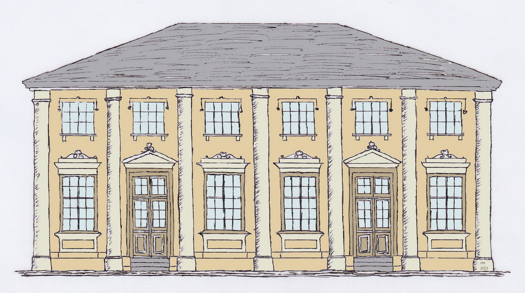 Im September 1850 reichte der Schänkwirth Gräfe zur Erweiterung seines Schankbetriebs ein Projekt unter der Bezeichnung Concert- und Tanzsaal beim Neuschönefelder Gemeinderat ein. Aus den Projektunterlagen in der Bauakte habe ich nachfolgende Skizze der Hofansicht angefertigt [Quelle #3].