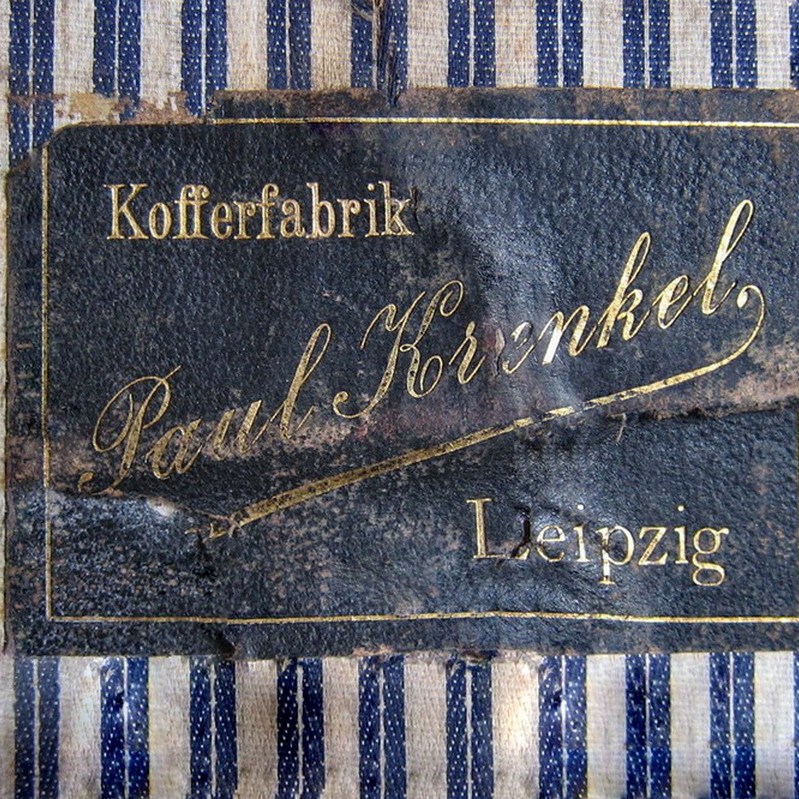 Unter einem Reisekoffer wurde im Gegensatz zur flachen, eleganten Ausführung von heute, damals mehr eine robustere, voluminöse und schwere Reisetruhe verstanden, wie folgende Bilder aus dem Leipziger Geschäfts-Adressbuch [Quelle #2] und von Details eines Koffers der Fa. Paul Krenkel aus den 1890er Jahren zeigen: