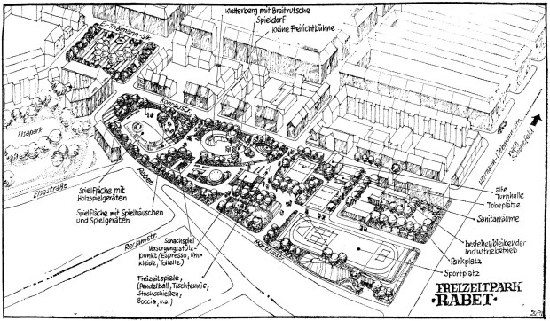 Im Februar 1978 wurde schließlich in der LVZ [Quelle #2] eine ansprechende Grafik vom neu zu schaffenden Freizeitpark ,,Rabet“ abgedruckt.