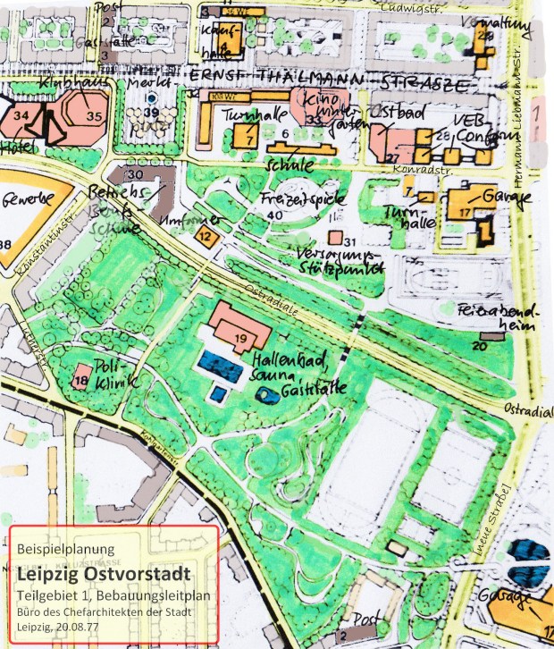 Ab dem Jahr 1976 müßten auch die ersten Planungen für die Umgestaltung der Leipziger Ostvorstadt im Büro des Chefarchitekten der Stadt Leipzig begonnen haben.