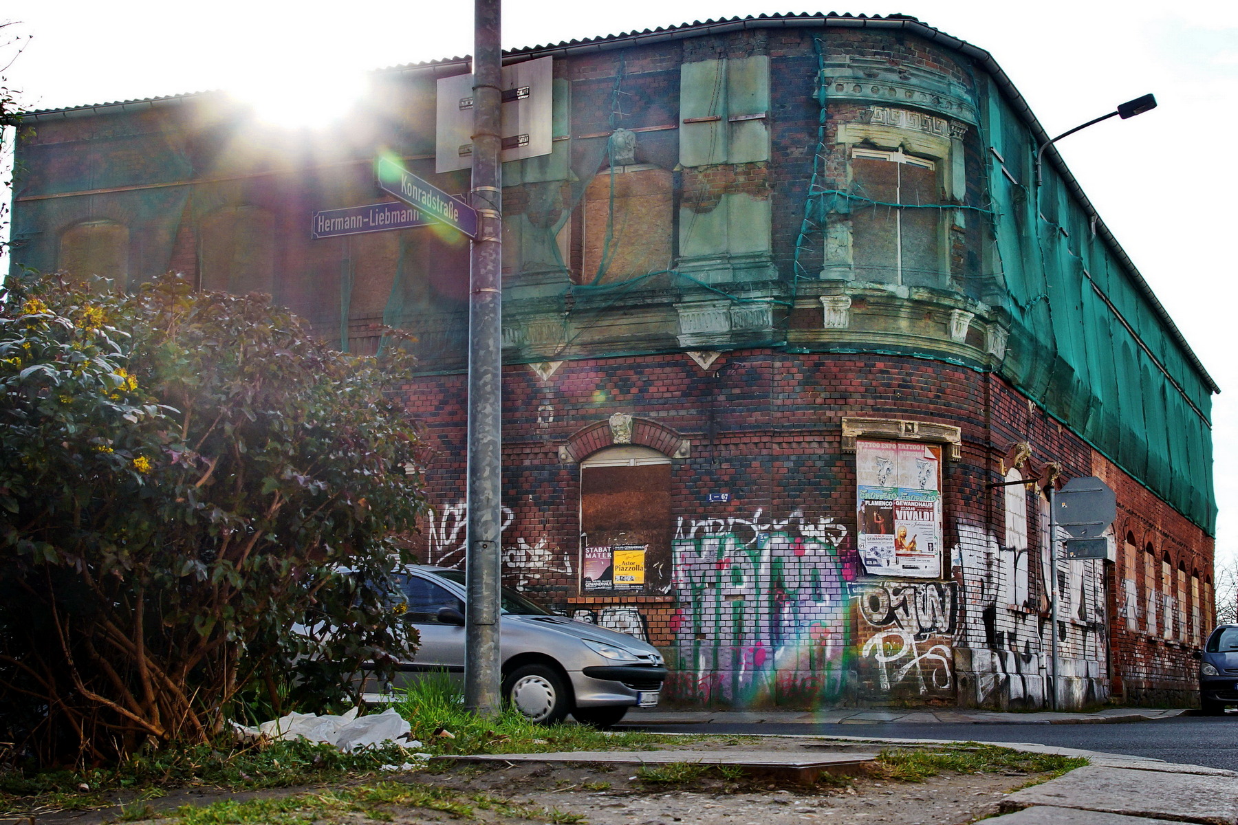 … an der Ecke Hermann-Liebmann-Straße/ Konradstraße, befindet sich der zweigeschossige, denkmalgeschützte, gründerzeitliche Fabrikbau „Alte Wagenhalle“ (ehemals Automobile Carl Wirth).