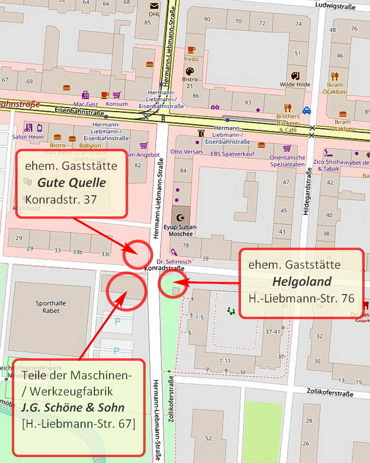 Wie ich zum Thema gekommen bin: Bei den Umfeld-Recherchen zum heutigen Rest der Fabrikgebäude an der Ecke Konrad-/ Hermann-Liebmann-Str. (Blog-Beitrag Schöne Fragmente) habe ich auch die Vorgeschichte der Eckgrundstücke Konradstr. 37 und Hermann-Liebmann-Str. 76 mit betrachtet. Dabei fiel mir auf, dass in den ,,goldenen" 1920er Jahren im Eckgrundstück Konradstr. 37 in den Leipziger Adressbüchern ein Hausbesitzer mit dem exotischen Namen Sbar vel Zbar genannt wurde. Das wollte ich mir mal etwas genauer ansehen.