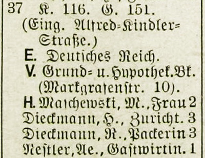 Das Grundstück Konradstr. 37 ist nach dem Grundbucheintrage vom 20.10.1936 von Babette verw. Sbar vel Zbar geb. Lübschütz u. 2 Miteigent. zu ungeteilter Hand erworben worden. [Quelle #4]