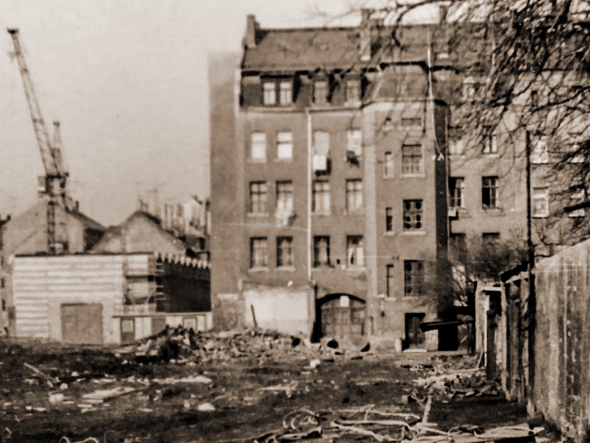 Auf den folgenden Bildern habe ich die Bebauungssituation zum Zeitpunkt der Umgestaltung im Bereich der Husemannstraße anhand von alten Bildkopien aus dieser Zeit, dem heutigen Bebauungszustand gegenübergestellt