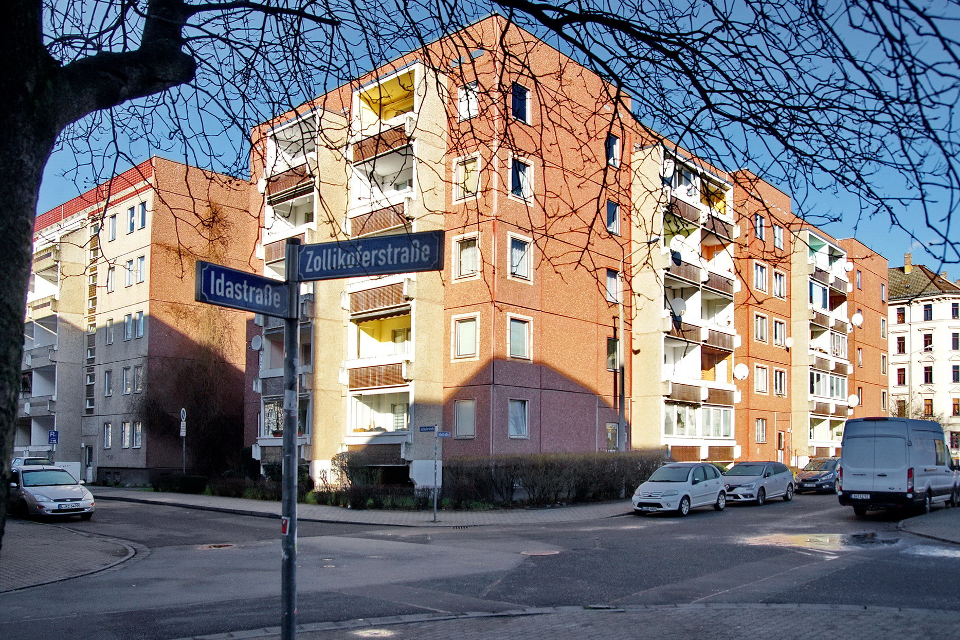 Dieser älteste Abschnitt der Idastraße zwischen der Dornberger- und der Konradstraße wurde zwischen 1862 und etwa 1880 bebaut. Die ältesten, sehr schmalen Häuser, entstanden auf der rechten Straßenseite. [Dornbergerstr. – früher Ewaldstr.]