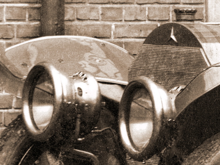 Interessantes Detail im rechten Bild: über dem Kühlerblock war damals nur der schlichte dreizackige Benz-Stern zu sehen.