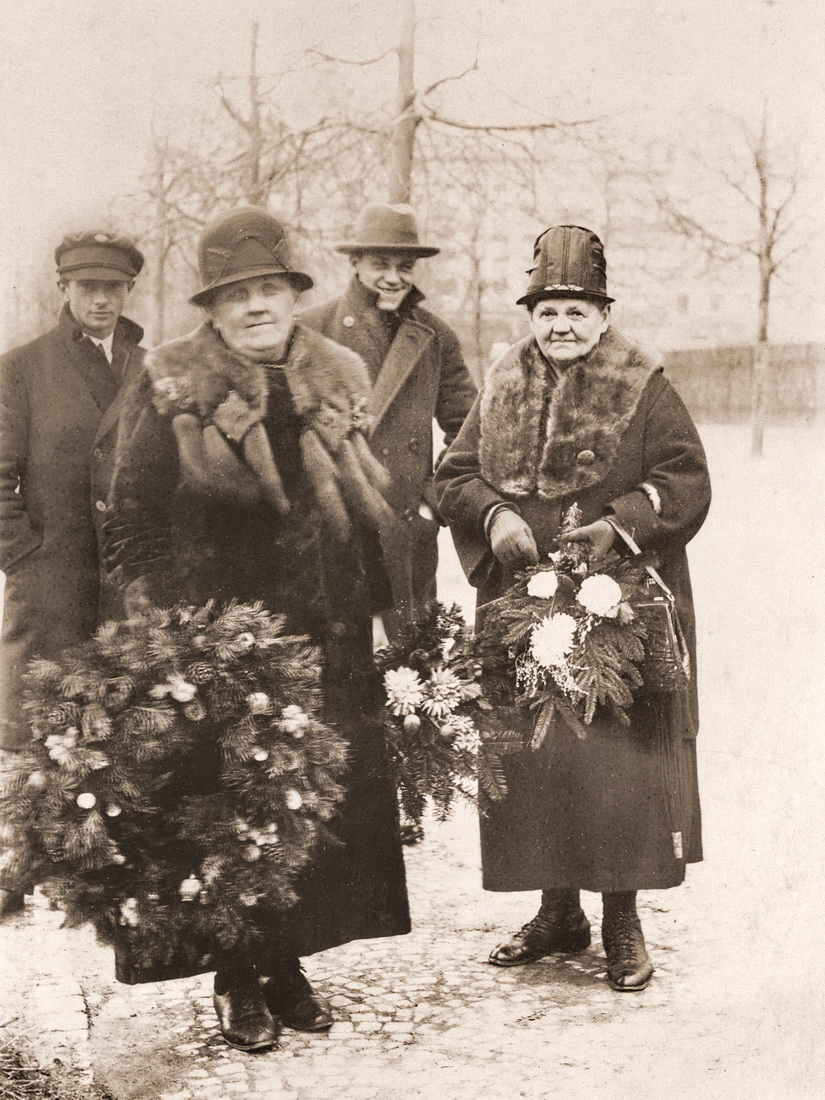 Die folgenden beiden Aufnahmen zeigen die Schwester Lina (Meyer) und Rosa (Klose) gegen Ende der 1920er Jahre. Links bei der Beerdigung von Franz Klose mit Rosas Söhnen Hellmut und Herbert im Hintergrund.