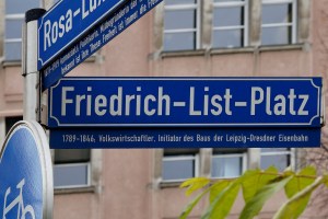 Der Listplatz heißt eigentlich ,,Friedrich-List-Platz“ – er wurde (siehe Straßenschild rechts) nach dem Volkswirtschaftler und Initiator des Baus der Leipzig-Dresdner Eisenbahn Daniel Friedrich List (1789-1846) benannt.