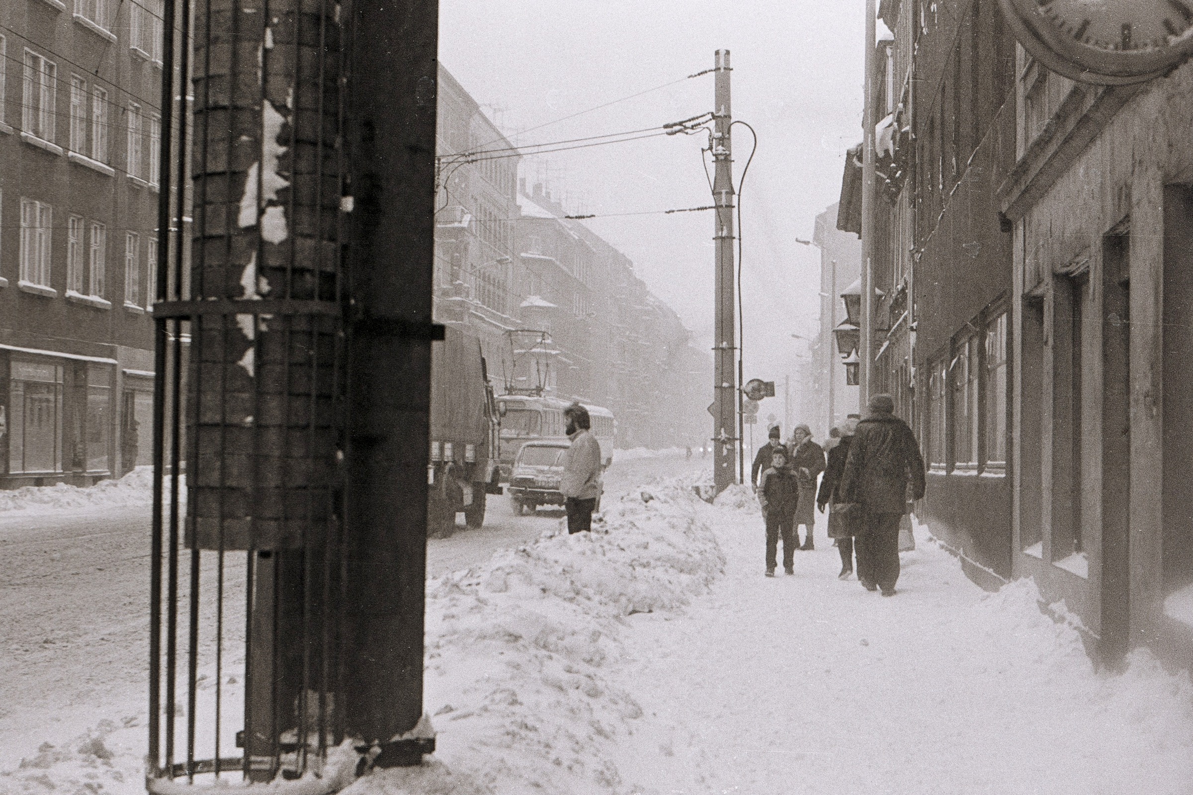 Nein, per pedes war an diesem Tag oft die einzig mögliche Fortbewegungsart, weil die Temperaturen ganztägig unter minus 20 Grad abgesunken waren. Der Leipziger Straßenbahnverkehr kam durch die häufiger werdenden Stromabschaltungen und Störungen der elektrisch betriebenen Weichen fast zum Erliegen. Manchmal blieben Straßenbahnen auch mitten auf der Straße einfach stehen und nach dem die Fahrgäste ausgestiegen waren sah das sehr gespenstisch aus …
